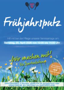 Ordentliche Mitgliederversammlung, Donnerstag 23.04.2026 um 19 Uhr, im Restaurant Tu Huus Tennis Treff