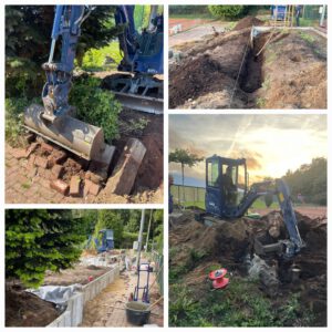 Erwähnenswert ist unser Bauprojekt, die Errichtung einer neuen Zuschauertribüne. Das war eine weitere besondere Challenge in diesem Jahr. Mitglieder aus unseren Reihen haben gezeigt, dass man gemeinsam „Berge“ versetzen kann. In unserem Fall ging es zwar nicht um das Versetzen von Bergen, sondern um die Sanierung der Tribüne, aber beides ist vergleichbar. Durch Teamwork, gegenseitige Unterstützung, gemeinsame Anstrengung und positive Einstellung hat unser SV HR-Bau-Team mit dem Neubau scheinbar Unmögliches erreicht. Im April/Mai begannen die Arbeiten an der Tribüne. Erst Abriss und Entsorgung der alten Tribüne und der Hecken, Fundamentierung, und Errichtung der neuen Tribüne mit Bänken. Da gab es viel zu tun. Die Arbeiten zogen sich bis zum Oktober hin. Sponsoren, Förderer und viele Helfer legten als Baumeister Hand an, opferten ihre Freizeit und arbeiteten bei Hitze, Regen und Wind. Siehe nachfolgende Lichtbilder.