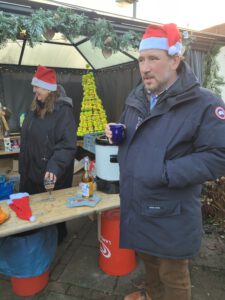 Natürlich war auch für die Kinder etwas vorbereitet. Neben Kinder-Apfel-Punsch standen auf allen Tischen Nikolaus-Teller belegt mit vielen weihnachtlichen Leckereien. Auch der Weihnachtsmann hat den Weg zu uns gefunden. Er war über die Tatsache, dass die Anzahl der gekommenen Kinder überschaubar war, etwas betrübt, aber so konnte sich der eine oder andere von den Erwachsenen über einen Schoko-Weihnachtsmann, Tennisbälle und noch vieles mehr freuen.
