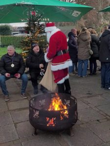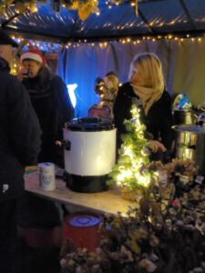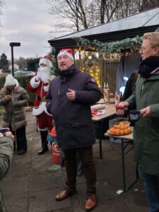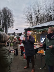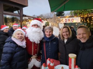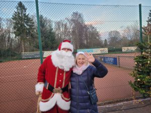 Natürlich war auch für die Kinder etwas vorbereitet. Neben Kinder-Apfel-Punsch standen auf allen Tischen Nikolaus-Teller belegt mit vielen weihnachtlichen Leckereien. Auch der Weihnachtsmann hat den Weg zu uns gefunden. Er war über die Tatsache, dass die Anzahl der gekommenen Kinder überschaubar war, etwas betrübt, aber so konnte sich der eine oder andere von den Erwachsenen über einen Schoko-Weihnachtsmann, Tennisbälle und noch vieles mehr freuen.
