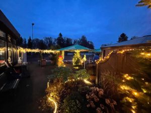 Viele Weihnachtswichtel waren emsig am Werk, um die Club-Terrasse durch Lichterketten, Kerzen, funkelnde Sterne in einem festlichen Lichterglanz erstrahlen zu lassen. Die Tannenbäume zeigten sich in einem prachtvollen Kleid aus vielen Lichtern.